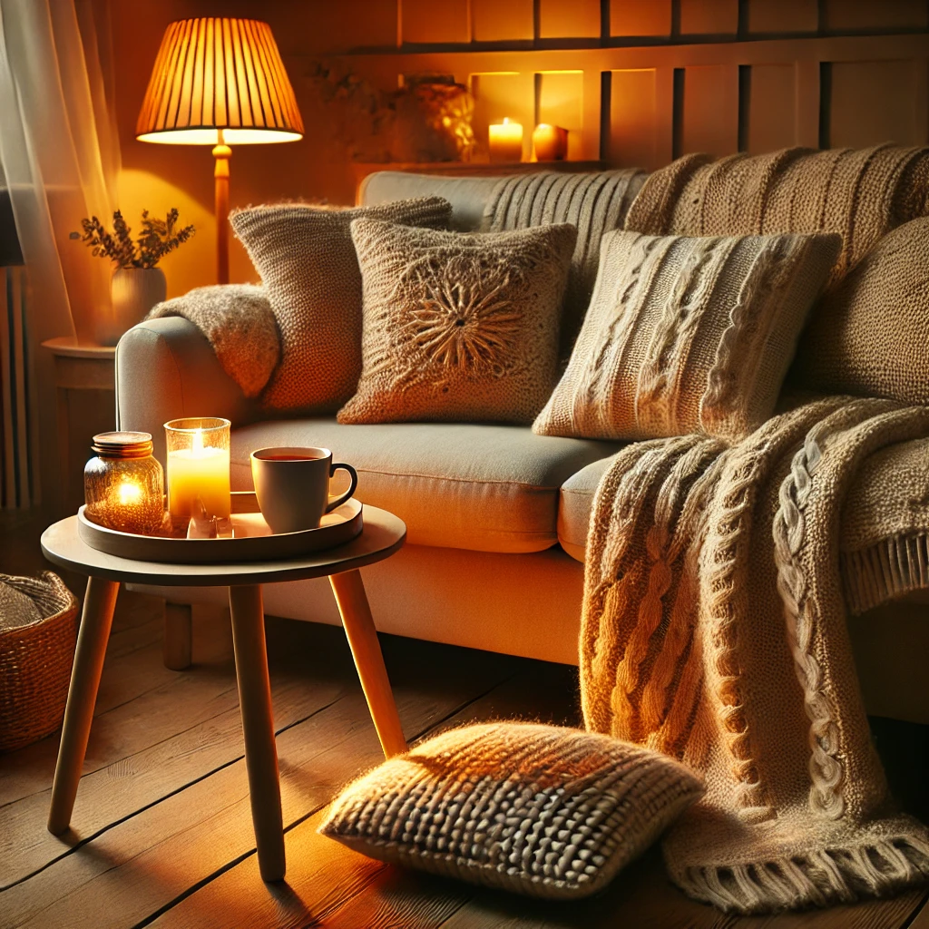 소파나 침대에 포근한 담요쿠션을 추가해 보세요. 따뜻한 니트 소재나 극세사 소재의 아이템은 시각적으로도 따뜻하고 촉감까지 좋아요. 거실에 러그를 깔면 차가운 바닥을 보완하면서도 공간의 온도를 높이는 효과를 줄 수 있어요.