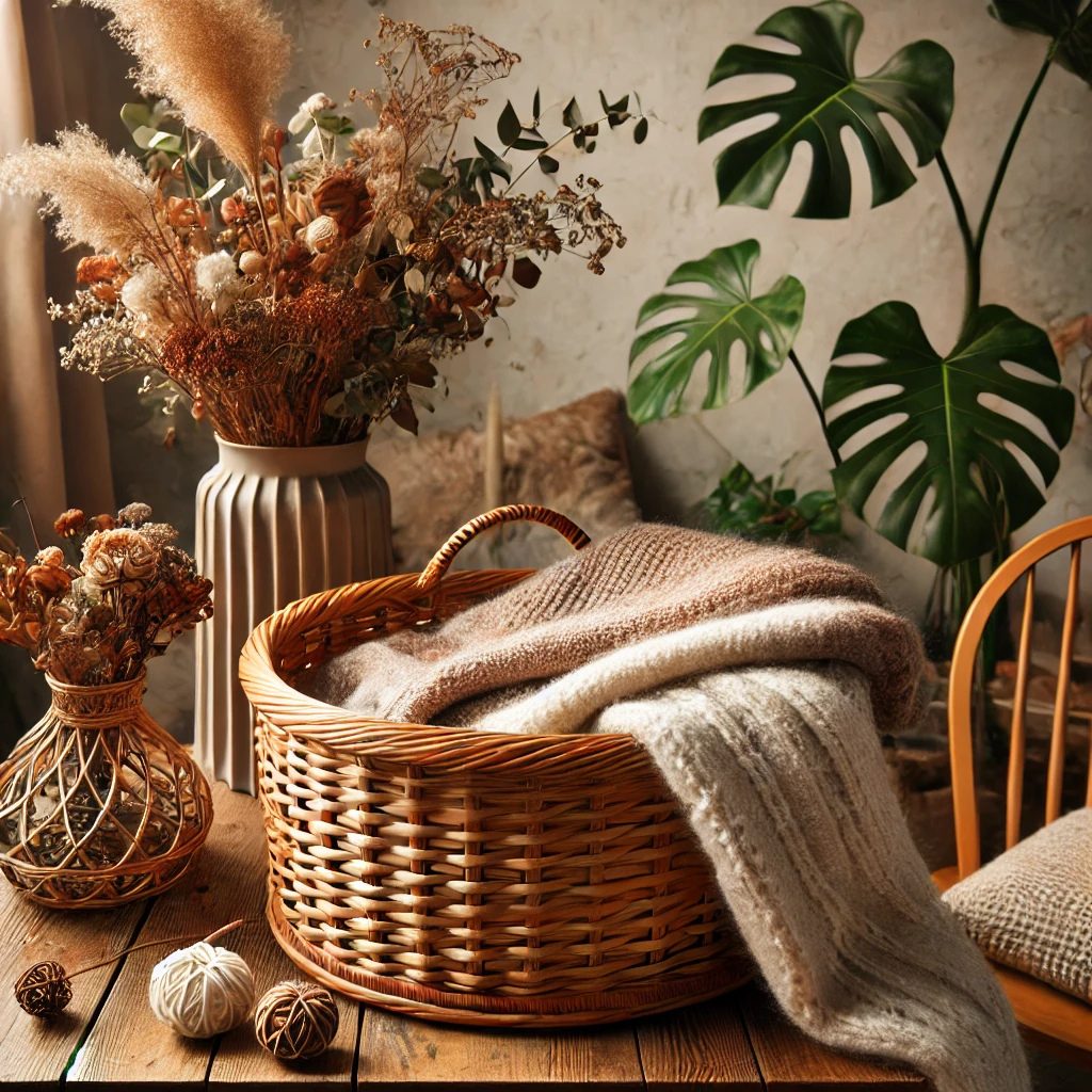 라탄 바구니나 우드 트레이를 활용해 실용적이면서도 멋스러운 인테리어를 연출해 보세요. 나뭇결이 살아 있는 원목 가구를 배치하거나, 마른 꽃과 가지를 활용한 드라이플라워 장식을 추가하면 더욱 감각적인 공간이 완성된답니다.
