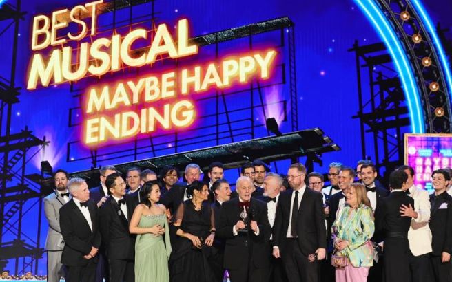 9일(한국시간) 미국 뉴욕 라디오시티 뮤직홀에서 열린 제78회 토니상 시상식에서 어쩌면 해피엔딩 토니상 수상의 기쁨을 누렸습니다. 어쩌면 해피엔딩은 무려 10개 부문에 후보로 오르는 쾌거를 달성한 후, 작품상, 연출상, 각본상, 음악상(작곡 및 작사), 무대디자인상, 남우주연상까지 총 6개 부문에서 수상했습니다.