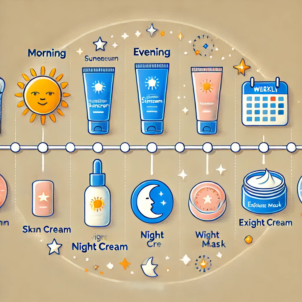 - 아침 루틴: 아침에는 피부를 깨우고 하루를 준비하는 단계예요. 보습이 풍부한 토너로 시작한 후, 에센스와 크림으로 마무리하세요. 외출 전에는 자외선 차단제를 꼭 발라주세요. 이 과정은 겨울철에도 자외선이 피부 노화를 일으킬 수 있기 때문에 꼭 필요합니다.