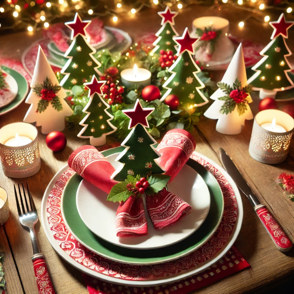 - 🎁 냅킨 접기: 초록색이나 빨간색 냅킨을 트리 모양으로 접거나 리본을 묶어 장식해보세요. 손쉽게 분위기를 업그레이드할 수 있답니다. 냅킨 링을 추가하면 한층 더 우아해 보여요.