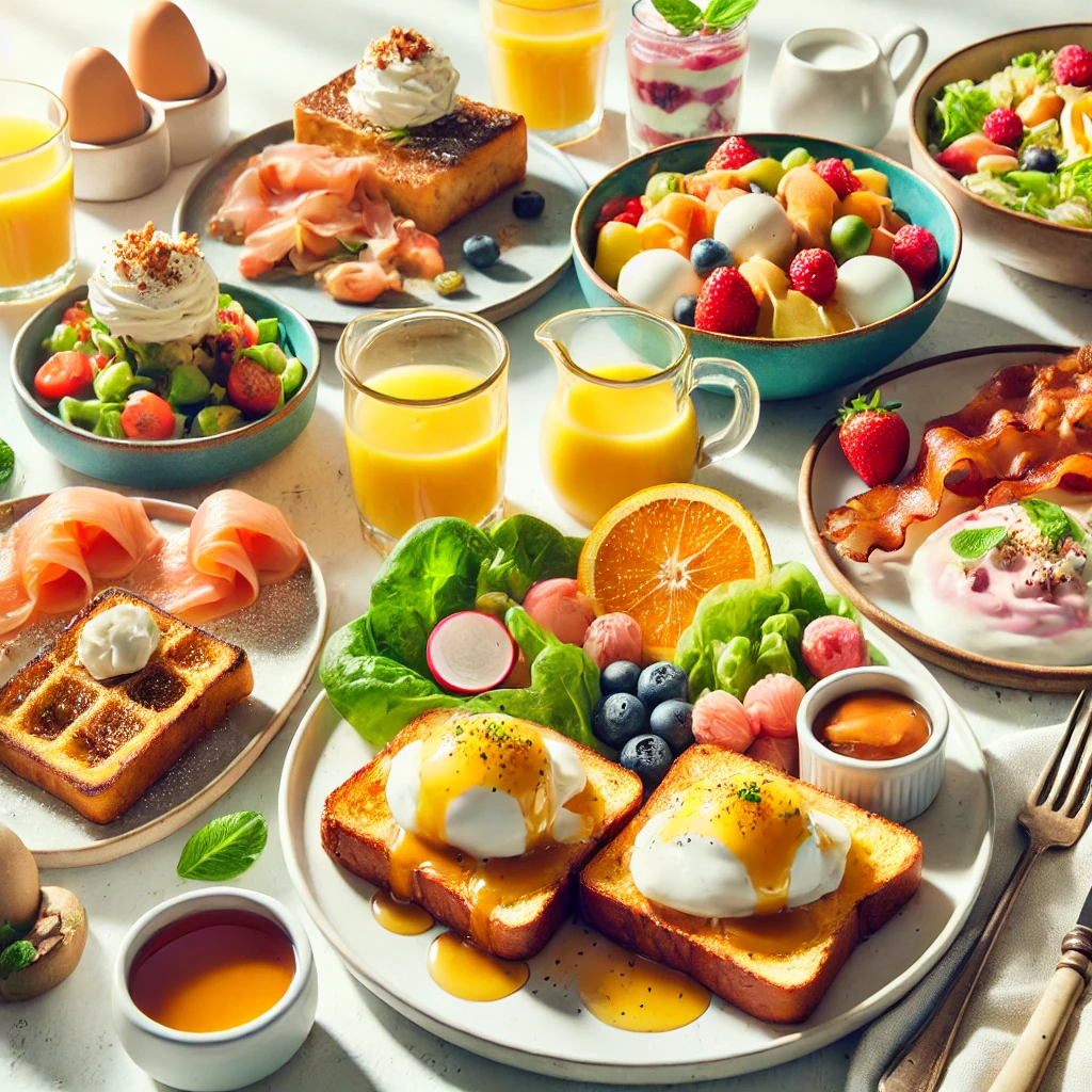 - 🎀 에그 베네딕트: 부드럽게 익힌 수란과 크리미한 홀랜다이즈 소스가 조화를 이루는 고급스러운 메뉴예요. 따뜻한 잉글리시 머핀 위에 얹으면 완벽하답니다. 준비가 간단하지만 테이블을 한층 세련되게 만들어줘요. 수란을 만들 때 약간의 식초를 추가하면 더 쉽게 완성할 수 있답니다.